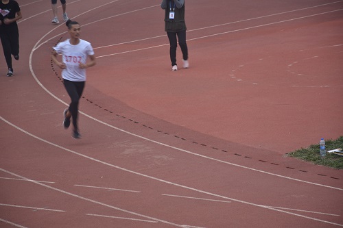 比赛开始前,张皓然镇定自若地进行热身活动,面对现场观众的热烈掌声,他目视前方、心静如水、胸有成足。比赛正式开始,各组运动员依照顺序在各自跑道准备就绪。发令声起,他反应敏捷,率先迈出步伐,如闪电一般地起跑。如风的身影向我们显示王者风范,展示出文苑学子敢于拼搏、争创第一的良好风貌。第三圈时,比赛进入白热化阶段,张皓然猛然发力,全力冲刺。秉着坚持不懈、永不放弃、勇争先列的信念,他不断地超越一个又一个竞赛选手,最终获得男子甲组1500米长跑决赛第三名的好成绩。