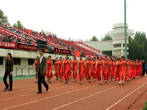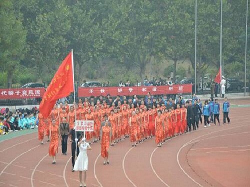 随着运动会入场式帷幕的拉开,各院方阵迈着整齐划一、坚定有力的步伐进入运动场。我院巾帼须眉身着旗袍西装,英姿焕发,神采奕奕。显示着文学院独有的姿态风韵。