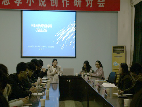(本站讯)强维权意识,扬浩然正气。12月3日下午,由学习与发展中心助学服务部举办的文学院权益座谈会于2号教学楼210会议室举行。14级辅导员张健,校学生会权益部代表,14、15级全体班委,16级学生代表参加此次活动。