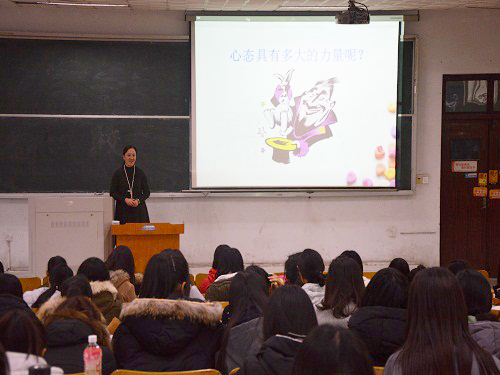 (本站讯)“与心灵相约,与健康同行”为提高学生对心理健康的认识,保障学生心理健康的需要,树立积极健康的生活态度。12月3日下午,由我院主办的“积极心理学”健康知识讲座于东校3号教学楼310教室顺利举行。山东理工大学继续教育学院心理咨询师培训中心主任、稷下心理研究中心主任沈艳英担任主讲人,我院2016级全体同学参加了此次讲座。