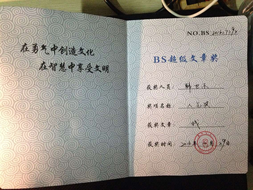 (本站讯)10月29日,“BS超级文章奖”第七届全国大学生征文颁奖大会暨第八届征文活动启动仪式在中国人民大学举行。蒲公英文学社会员表现优异,获得多项奖励。