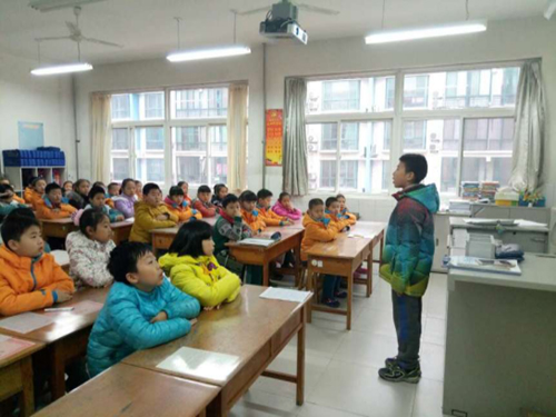 上图为五年级的小学生代表在讲名著故事,其他同学在认真倾听。五年级的学生明显比四年级的学生听话,而且课堂纪律不用强调好多遍,每个人都能认真完成我布置的学习任务。