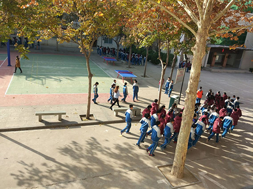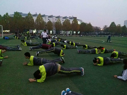 学生们对于新来的实习老师充满了好奇与新鲜感,班主任说正因为这样,无论学生们做什么只要有我在,他们都会表现的很好。初四学生跑操之后还要做体能训练,为了中考的体育成绩,学生们不得不训练。当我发现有些学生在偷懒的时候,便说了一句“你们不认真的样子真丑!”大家又继续咬牙坚持。我顿时倍感欣慰。图为学生体能训练时的场景。