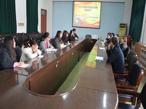 (本站讯)春暖花开迎朝气,爱心满满支教行。2月27日下午,我院2017年度师范生实习支教欢送仪式在西校区2号教学楼210会议室举行。学院院长张艳梅、学院副院长吕逸新、党总支副书记宋红丽、实习支教指导老师张丰君、2014级辅导员张健等出席欢送仪式。
