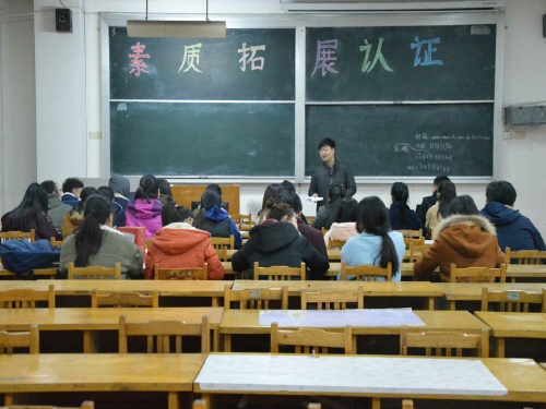 (本站讯)为了进一步帮助学生适应大学生活、培养当代大学生的综合素质和能力,使学生度过一个完整、有意义的大学生活。3月2日晚,学院素质拓展认证培训会于西校区一号教学楼321教室顺利开展。此次培训会由学院学生会素质拓展中心组织开展,院学生会副主席兼素质拓展中心主任史阳主持此次培训会。14级、15级、16级部分学生参加此次培训会。