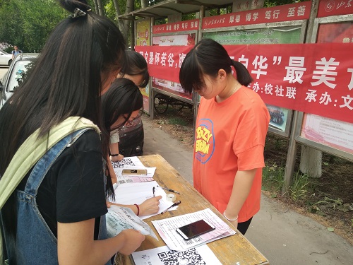 (本站讯)青青子衿,悠悠我心。为更好地弘扬中华文化,传承中国古典诗词。近日,由校社联主办,我院蒲公英文学社与红烛社承办的中华最美诗词大赛宣传活动于各大餐厅门口顺利进行。