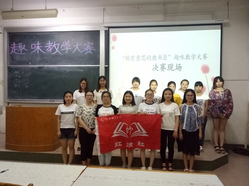 (本站讯)为人师表,诲人不倦。为使同学们更好地换位思考理解老师们的默默付出,学会珍惜与感恩。5月21日晚,我院红烛社举办的“做有意思的教书匠”趣味教学大赛决赛于1号教学楼417教室举行。经过前期初赛选拔的9名同学顺利进入本次决赛,我院学生会主席方龄敏、红烛社社长董科言以及学生代表边鑫担任此次决赛的评委。