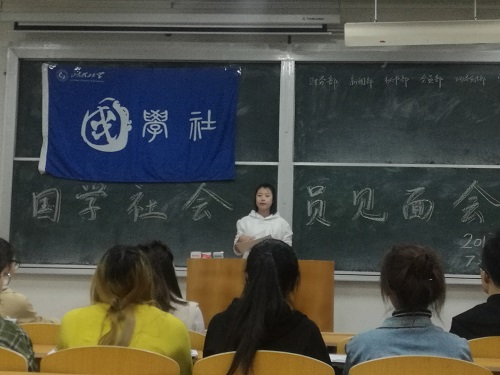 (本站讯)弘扬传统文化,品味国学经典。10月21日晚,我院国学社于1号教学楼216教室举行会员见面会。此次见面会由国学社社长倪慧瑜主持,各个部门的部长、副部长及会员参加会议。