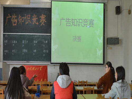 (本站讯)为使同学们掌握更多的广告知识,提高同学们的科学文化素养。11月5日上午,由支点广告学社主办的“广告知识大赛决赛”于1号教学楼321教室顺利举行。支点广告学社社长张祺琪主持活动,社团全体成员参加活动。