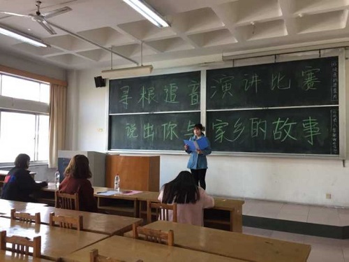 (本站讯)故乡是每个人心底最柔软的牵挂,最美好的缱绻。为加强同学们之间的文化交流,给大家提供一个展现自己与家乡温馨故事的舞台。11月5日上午,由我院金话筒协会主办的“寻根追音”——说出你与家乡的故事演讲比赛初赛于1号教学楼314教室举行。此次活动由蒲公英文学社社长颜若鸿、金话筒协会副会长李英明、校级演讲比赛一等奖获得者张安静担任评委,全体参赛选手和部分同学参加。