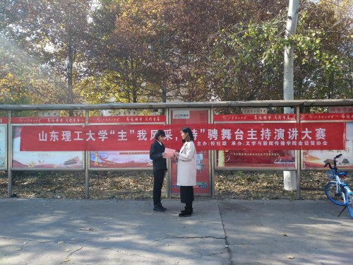 (本站讯)妙语如珠显语言魅力,口吐珠玑展舞台风采。为贯彻党的十九大精神,传播社会正能量,同时为同学们提供自我展现的平台。11月15日,由我校学生会社团联合会主办,我院金话筒协会承办的“主”我风采,“持”骋舞台主持演讲大赛宣传活动于第二餐厅、第三餐厅及东校区各餐厅门口顺利进行。