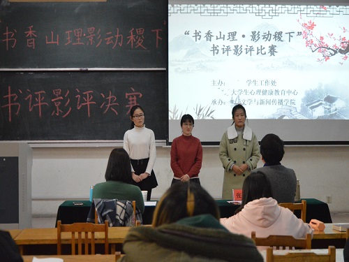 (本站讯)三更有梦书当枕,夜半无人影为朋。为促进我校心理健康教育工作的开展,营造良好的校园心理氛围,在第十四届“心理健康教育活动月”活动开展之际,11月26日下午,我院学习发展中心心理发展部于1号教学楼321教室举行“书香山理·影动稷下”书评影评决赛。此次比赛由指导老师王素霞、张玉霞担任评委,全体参赛者参与。
