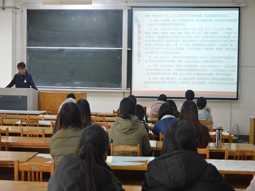 此次培训会分为新闻写作知识、写作细节介绍和实例讲解两个部分。培训伊始,乔旭首先以新闻所附照片基本要求为切入点,对照片像素、尺寸、格局等对新闻质量影响较大的因素做详细讲解。之后,他从新闻具体写作要求和准则等方面对日常新闻写作做具体讲解。他讲到新闻写作讲求真实全面、客观公正、结构完整、格式清晰等,同时他还说明新闻标题和新闻结语对整篇新闻的重要性。讲解过程中,新闻中心新成员们了解到校园内常见新闻类别及各类新闻采集过程中的细节,明确新闻写作的严谨性,特别是用词方面,用词要恰当,不能大词小用,如“此次”“本次”的用法、学校部门的主次、学院名称的书写和一些关键词的用法;新闻写作中必须突出主题并围绕主题。最后,乔旭用我院官网上的新闻稿作为实例进行讲解,对稿件的部分内容做出分析点评。整个培训过程,乔旭采用正反例证的方式进行细心讲解,体现出其严谨、认真的日常工作态度。新成员仔细听讲、记录,整个培训过程有序进行,培训效果显著。