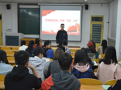 (本站讯)为响应校党委对青年学生提出的“五有人才”培育目标,鼓舞学生干部努力进取、热爱工作,积极为学院建设贡献自己的力量。4月9日晚上,“学习优秀校友,争做‘五有’人才”动员会于2号教学楼227教室举行,学院学生会秘书处主任徐啟轩担任主讲人,2016级、2017级学生干部参加会议。