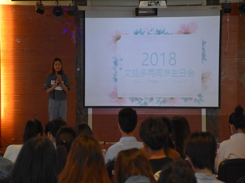 活动伊始,徐鑫雨对到场的各位来宾表示热烈欢迎,并宣布文益多两周年生日会正式开始。国学社带来的《成人礼》表演拉开生日会序幕,表达了对文益多的美好祝愿。紧接着,姜涛演唱歌曲《白羊》,动人的嗓音点燃现场气氛。随后,文静结合工作情况、维权成果和祝福视频等内容向大家展示文益多两年来的成长历程,感谢大家对文益多发展的支持和帮助,并和现场人员为文益多唱生日歌,一同分享蛋糕,现场气氛抵达高潮。接下来,田明月对文益多在师生维护和院校发展方面做出的贡献表示肯定,并期待文益多在接下来的工作中能够再接再厉,向更宽、更好、更美的道路迈进。随即带来的魔术表演和相声表演,用幽默诙谐的语言、引人入胜的表现引得观众们掌声连连。诗朗诵《五四,是青春的火焰》以及话剧《人生自古谁无死》更是为同学们献上一场听觉和视觉的盛宴,体现出文院学子昂扬向上的精神风貌。在抽奖环节中,幸运者收一份精美礼品,同时为多多送上祝福,共同分享喜悦时刻。最后,文静再次对大家的到来表示感谢,生日会在大家的合影留念中顺利结束。