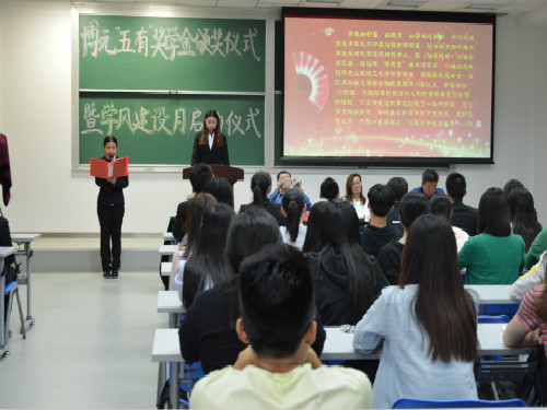 (本站讯)5月8日下午,我院“博元‘五有’奖学金”颁奖仪式暨学风建设月启动仪式在1号教学楼403教室举行。此次活动由博元堂美术馆馆长路宏,我院院长张艳梅、副院长王圣,获奖学生以及学生代表参加活动,我院党总支副书记孙钦泉主持。