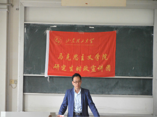 (本站讯)5月12日上午,学院邀请马克思主义学院研究生时政宣讲团在1号教学楼417教室进行以“新时代新征程,学习贯彻两会精神”主题的时政宣讲会。宣讲团成员张乐乐、包晓娟担任主讲人,2018年上半年党校入党积极分子学员们积极参加。