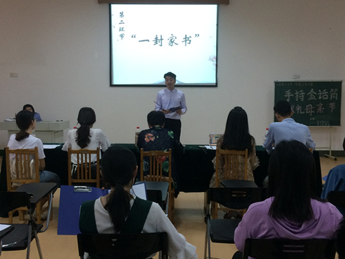 (本站讯)五月母爱恩义长,孝礼长诵赞华邦。5月24日下午,由我院金话筒协会与张玉霞讲坛联合主办的第二届“手持金话筒,献礼母亲节”朗诵大赛决赛在1号教学楼412教室举行。我院金话筒协会指导教师张玉霞、社团指导老师刘菲菲、前校学生会副主席方龄敏、电视台优秀主持人许文哲、大学生艺术团优秀主持人张宾佳、广播台优秀主持人许贞武担任此次活动评委。