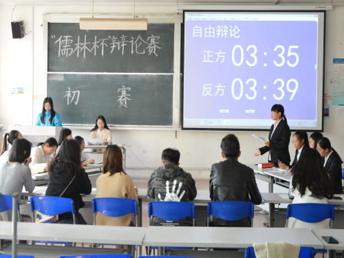 (本站讯)群雄舌战展雄风,争锋相对辩天下。10月18日下午,我院“儒林杯”大学生辩论赛初赛在1号教学楼219教室和212教室同时展开。机械工程学院新生杯优秀辩手孙世豪,新生杯冠军王淑婷、盖奕洁,晏子杯亚军王丽雅、胡凯悦等担任评委。