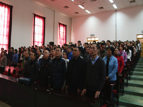 (本站讯)11月22日下午,我院2018年“学风建设月”动员大会在模拟法庭举行。学院院长张艳梅、党总支副书记孙钦泉、副院长吕逸新出席会议。学院全体教职工以及班委、宿舍长近300人参加了会议。会议由学院党总支书记李义勇主持。