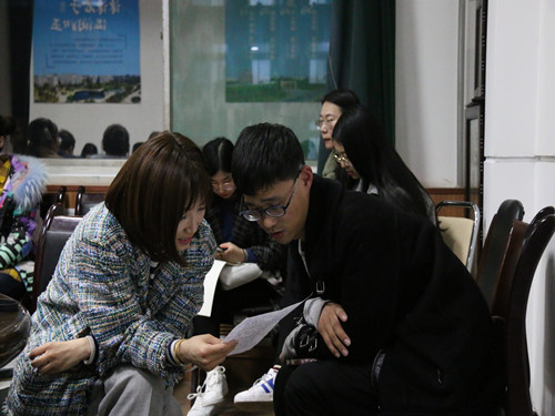 模拟面试开始前,翟羽佳为大家介绍此次活动的意义,随后她向大家讲解了研究生复试面试的具体流程,回答老师提问的技巧以及在面试过程中自我状态调整的方法。模拟面试正式开始,此次模拟面试共分为两个环节:英文自我介绍与评委老师提问。首先,学生用英语进行简单自我介绍,随后,由5位老师针对各位同学报考专业方向进行专业性提问,在该过程中了解学生对专业知识与实践技能的掌握程度,指出学生在面试时存在的不足,并提出针对性意见,帮助学生整理面试思路,积累面试技巧。有同学在英语发音以及词汇运用方面存在问题,对此,翟羽佳提出,要注意发音语调要抑扬顿挫,发音要清晰准确,多运用高级词汇。发言时要充满自信而带有谦卑,不能过于张扬。孟婷在点评时指出,要掌握牢固专业理论知识,不断丰富自己的知识面,并学会将其与当今社会现实相结合,灵活运用。