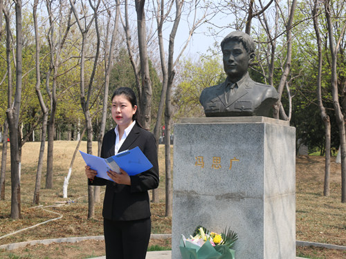 (本站讯)4月4日下午,我院“缅怀革命先烈,争做五有人才”主题教育活动在冯思广烈士雕像处顺利举行。40余名学生党员、入党积极分子参加活动,活动由院学生会主席迟静主持。