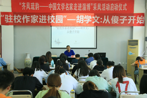 (本站讯)5月31日下午,驻校作家讲座——“从傻子开始”胡学文专题讲座在西校区2号教学楼210会议室顺利举行。一级作家、河北省作家协会副主席、张家口市作家协会主席胡学文担任主讲人,淄博市作家代表、我院师生代表参加讲座。