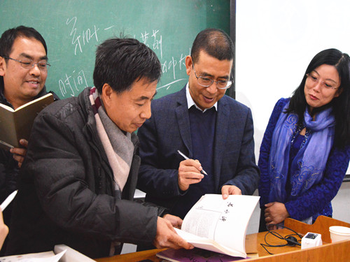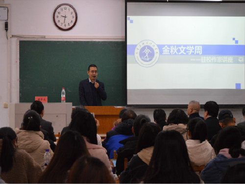 (本站讯)为丰富师生校园文化生活,扎实推动校园文化建设,营造文明和谐的人文环境。11月30日上午,“金秋文学周”--胡学文《文学与世界》专题讲座在东校区3号教学楼203教室举行。一级作家、河北省作家协会副主席、张家口市作家协会主席胡学文担任主讲人,我院院长张艳梅、淄博市作家代表、我院师生代表参加此次讲座。此次讲座由程琢如主持。