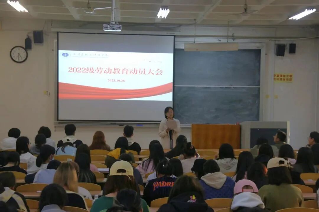 为培养学生的劳动意识,教育引导学生崇尚劳动、尊重劳动、热爱劳动,10月26日,我院在1号教学楼216教室召开2022级学生劳动教育体验周动员大会。2022级全体学生参加大会,辅导员张雨主持会议。