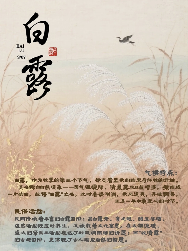 白露,作为秋季的第三个节气,标志着孟秋的结束与仲秋的开始。其名源自自然现象——因气温下降,清晨露水凝结成白色,故得白露之名。此时暑热渐消,秋风送爽,丹桂飘香,正是一年中最宜人的时节。
