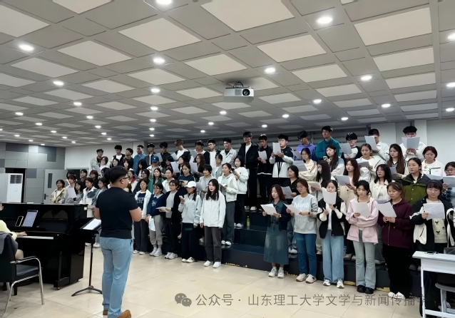 比赛现场,我院师生深情演绎了《满城烟花》与校歌《你伴随我》。《满城烟花》旋律优美,结合了“参军报国”“建功西部”“薪火相传”等主题进行的节目编排,深深打动了现场观众。随后,师生们又以饱满的情绪演唱校歌《你伴随我》,表达了对山东理工大学的深厚情感,展现了我院师生奋发进取、建功新时代的精神风貌。