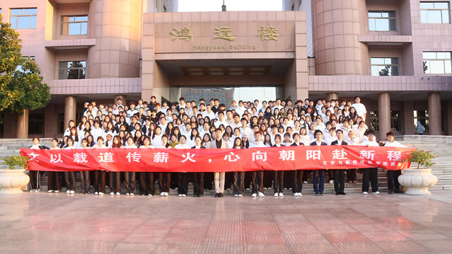 11月3日清晨,我院在鸿远楼南广场举行“文以载道传薪火,心向朝阳赴新程”主题升旗仪式。学院各年级辅导员和青年学生代表参与仪式。仪式由学生代表刘璇主持。