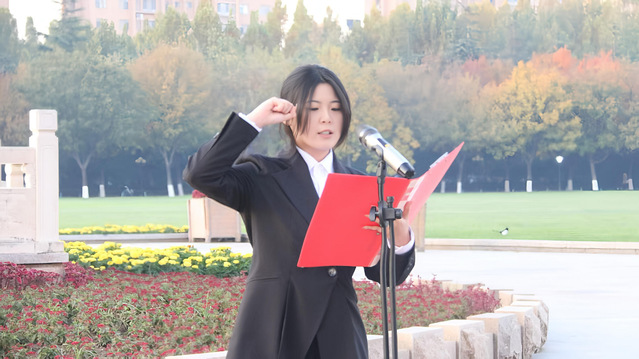 青年学生代表王嘉怡以“文以载道传薪火,心向朝阳赴新程”为题发表演讲。她从文化传承与青年担当出发,结合我院专业特色,阐述了“文以载道”精神对当代学子的深刻意义,号召大家以纸笔为媒,以实践为路,勇担传承文化薪火的时代重任。