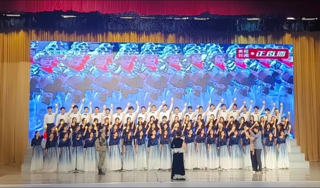 比赛现场,我院师生深情演绎了《满城烟花》与校歌《你伴随我》。《满城烟花》旋律优美,结合了“参军报国”“建功西部”“薪火相传”等主题进行的节目编排,深深打动了现场观众。随后,师生们又以饱满的情绪演唱校歌《你伴随我》,表达了对山东理工大学的深厚情感,展现了我院师生奋发进取、建功新时代的精神风貌。