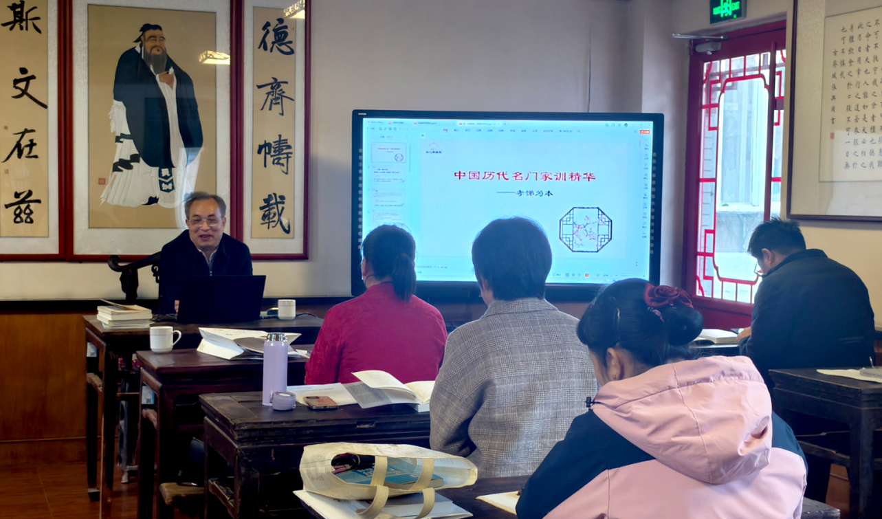 国学院专家团成员、临淄区文物局文物保护中心姜健主任结合孔孟荀与临淄、齐国德育故事和《管子》、《晏子》等齐文化著作中的家文化思想,为大家示范讲授了《中国历代名门家训精华——齐都风训》课程。