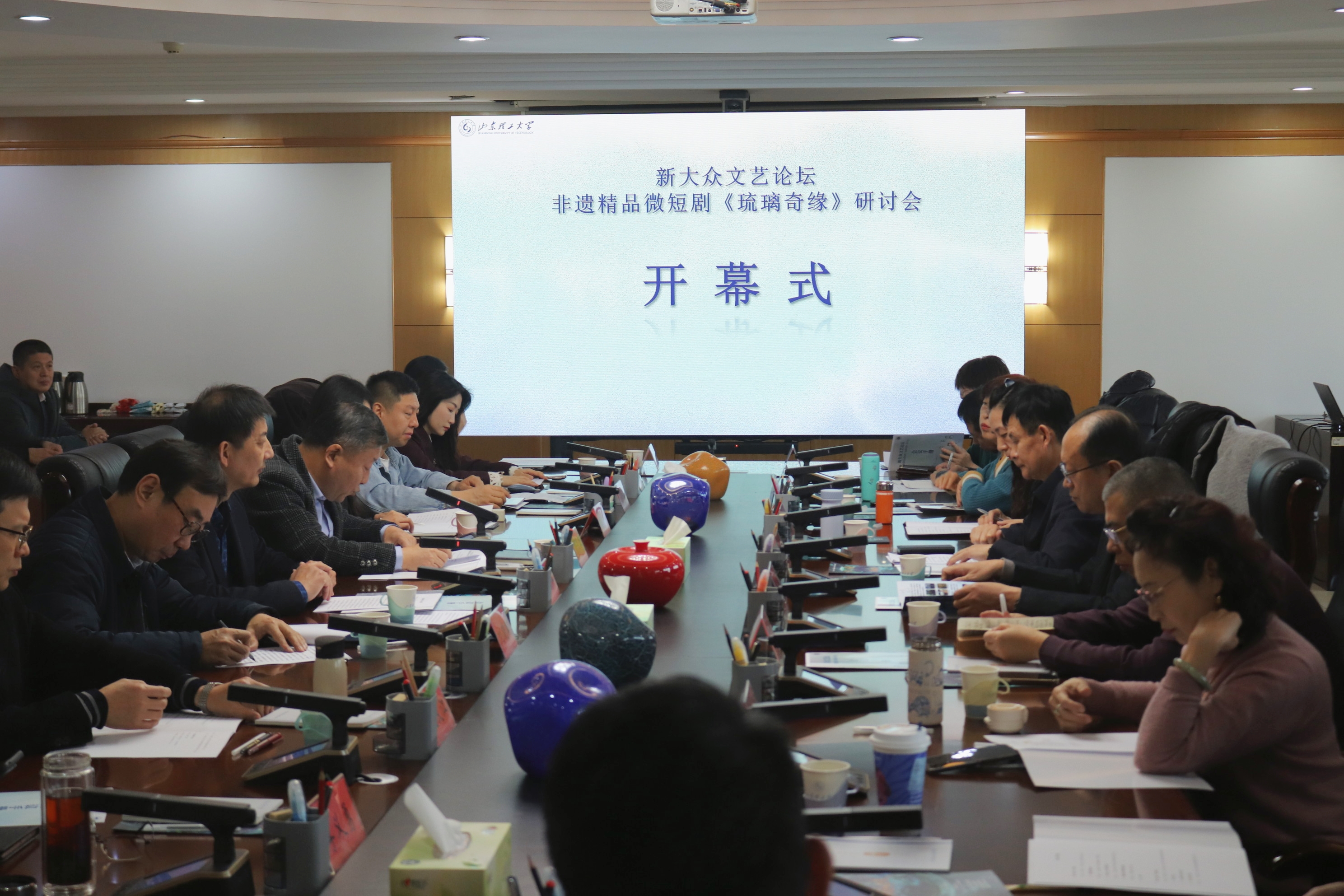 11月22日上午,非遗精品微短剧《琉璃奇缘》研讨会于山东理工大学鸿远楼九楼会议室举办。此次研讨会由山东理工大学、五色祥云(北京)文化传媒有限公司、山东师范大学联合主办,山东理工大学文学与新闻传播学院承办。学校党委常委、副校长郭庆兵,社会科学处处长邢同卫,文学与新闻传播学院党委书记李义勇、副院长吕逸新、翟羽佳及师生代表共同参会。开幕式由邢同卫主持。