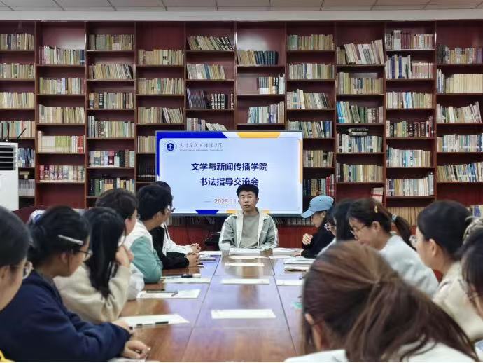 为弘扬中华优秀传统文化、丰富校园文化生活,11月13日下午,我院在2号教学楼208会议室举办书法指导交流会。活动由蒲公英文学社承办,特邀书法领域优秀校友王成斌返校指导,2025年“廉言书语”文化作品征集活动参赛同学参加交流会。