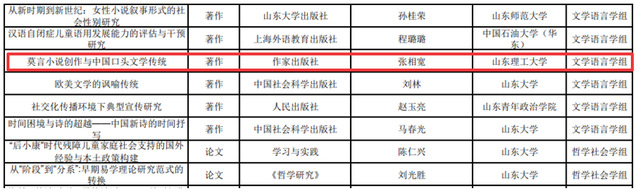 近日,山东省第三十七届社会科学优秀成果奖拟获奖名单公布,我院张相宽老师的著作《莫言小说创作与中国口头文学传统》荣获山东省第三十七届社会科学优秀成果奖三等奖。