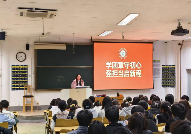 王涵宇老师以团章的发展历程为切入点,系统阐释核心要义,重点围绕团员的权利与义务、共青团民主集中制组织原则展开细致讲解。随后,全体团员共同观看《入团第一课》专题视频,通过历史影像、典型事迹重温共青团紧跟党的步伐、服务国家发展的光辉历程,深化对“党有号召、团有行动”政治本色的理解。此外,老师结合高校团员日常管理案例,详细解读《中国共产主义青年团纪律处分条例》相关条款,明确纪律红线,强调严守纪律既是团组织建设的必然要求,也是团员个人成长的重要保障。