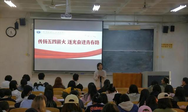 张雨老师以五四历史为脉络,通过珍贵史料图片、经典事件复盘,生动讲述了五四运动的爆发背景、历史意义与精神内核。她强调,五四精神的核心是爱国、进步、民主、科学,新时代团员要传承这份精神血脉,将个人理想融入国家发展大局。结合团干部工作实践,她分享了如何以五四精神为指引,组织开展校园文化、志愿服务等活动,引导团员在实践中锤炼品格、增长才干。互动环节,团员们围绕“新时代如何践行五四精神”展开热烈讨论,纷纷结合自身专业表达奋斗决心。