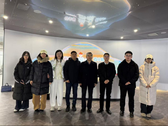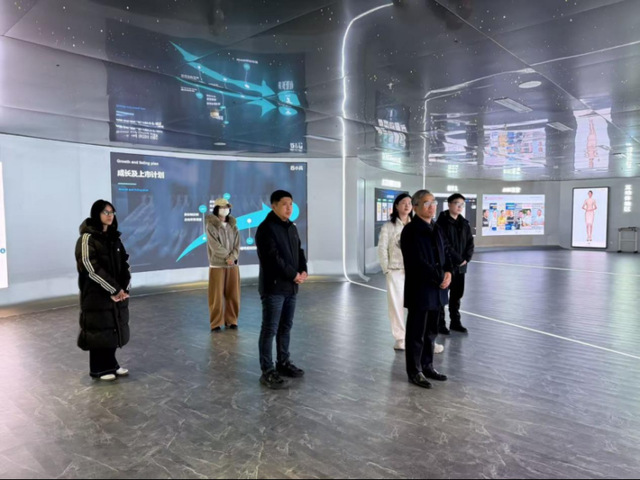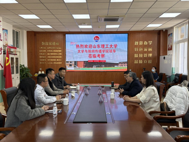 李义勇一行首先前往山东云小华数字科技有限公司参观交流。双方围绕人才培养、产教融合、实习就业等内容展开交流。李义勇详细介绍了学院在学科发展、专业特色、人才培养等方面的情况,重点阐述了在新闻传播、数字媒体等领域的教学资源与优势。企业负责人对公司业务范围、行业发展前景以及人才需求标准进行了介绍,表示希望在数字内容创作、新媒体运营等领域与学院开展深度合作,为学生提供就业实践平台的同时为企业吸纳优质人才。