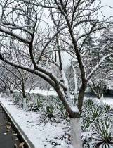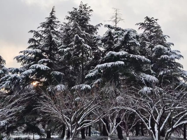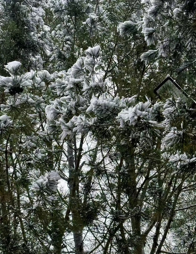 夜间辐射降温剧烈,水汽凝华,树枝、电线遍披雾凇,晶莹如玉;高山区更现冰挂、冻瀑。