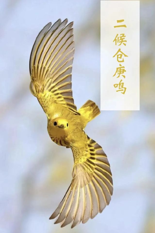 仓庚即黄鹂,在惊蛰后五日,黄鹂鸟最早感知到春阳之气,开始发出婉转悦耳的啼鸣,仿佛在向人们传递春天到来的消息,为春天增添了生机和活力,也让人们感受到了春日的美好。那清脆的啼鸣,是春日里最动人的乐章。