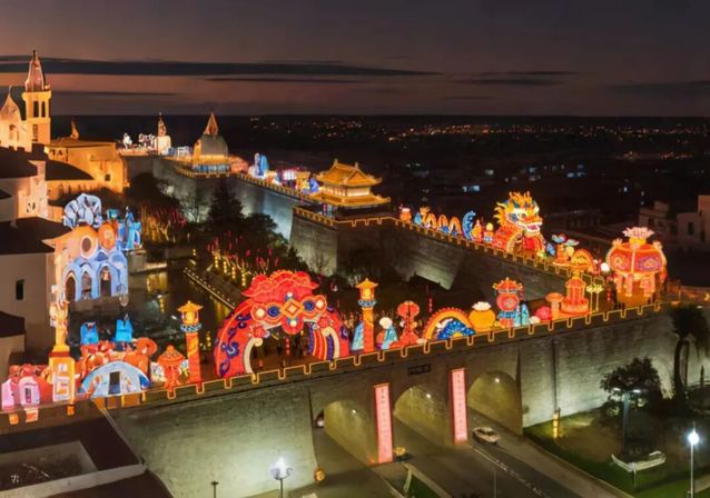 北方的元宵灯会,自带一股豪爽之气。古城墙之上,宫灯列队成阵,红绸飞舞;广场之中,走马灯旋转生姿,光影流转。舞龙舞狮的队伍穿梭在灯海间,锣鼓声、欢笑声、叫卖声交织成热闹的交响曲。在北方,灯不仅是美景,更是热闹的载体,每一盏灯都透着北方人对生活的热忱。