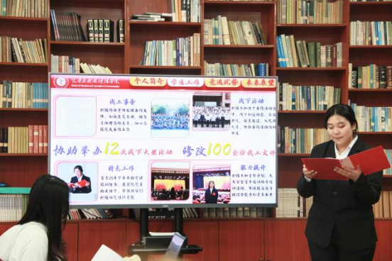 此次换届竞选坚持公平、公正、公开的原则,全程规范、有序开展。各位候选人按照抽签顺序,依次上台进行展示与现场答辩。在PPT演讲环节,候选人逐一围绕个人基本情况、过往学生工作任职经历、自身核心优势、对学生会主席团岗位的认知以及工作规划等内容,进行全面详实的陈述。